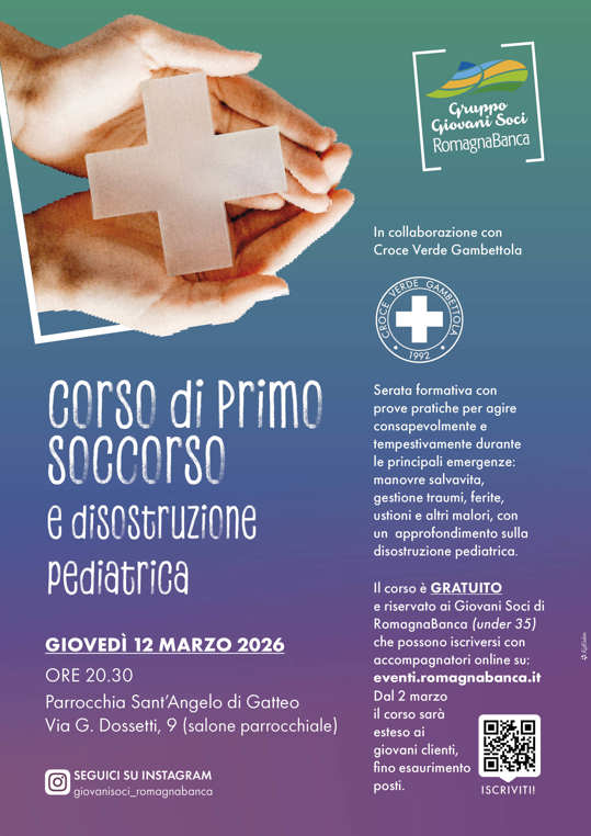 Il corso è gratuito e riservato ai Giovani Soci di RomagnaBanca (under 35) che possono iscriversi con accompagnatori on line sul sito: eventi.romagnabanca.it (dal 2 marzo il corso sarà esteso ai giovani clienti, fino esaurimento posti).